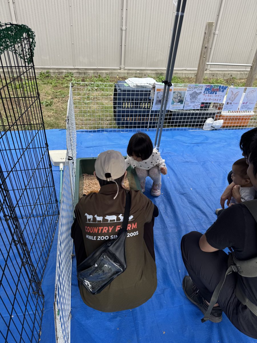 子どもたちはクラスごとに遊びに来てくれました。先生方がクラスによって、エサやり体験付きか、ふれあいだけか事前に考えてスケージュールを組んでくださっていたのでスムーズに移動動物園が開催できました!ご協力ありがとうございました。