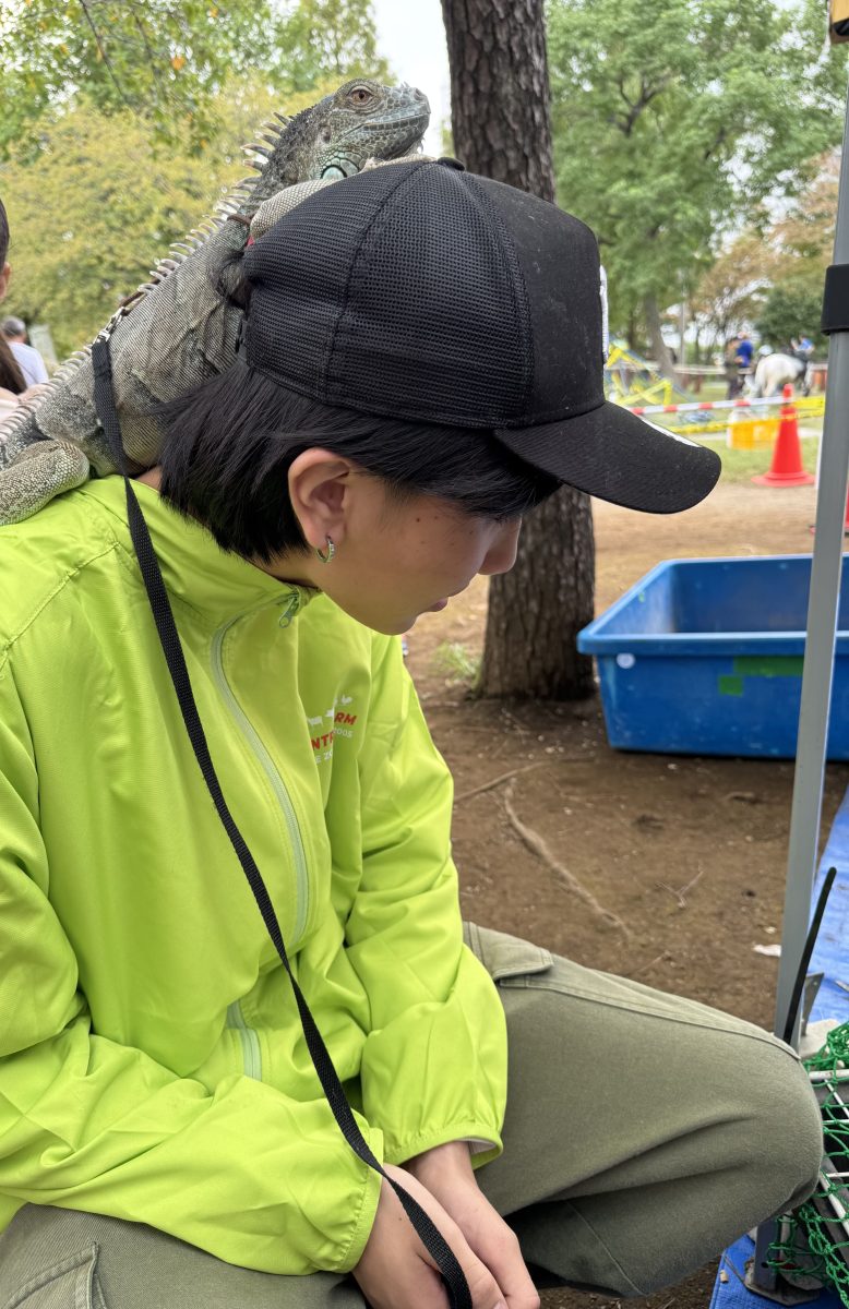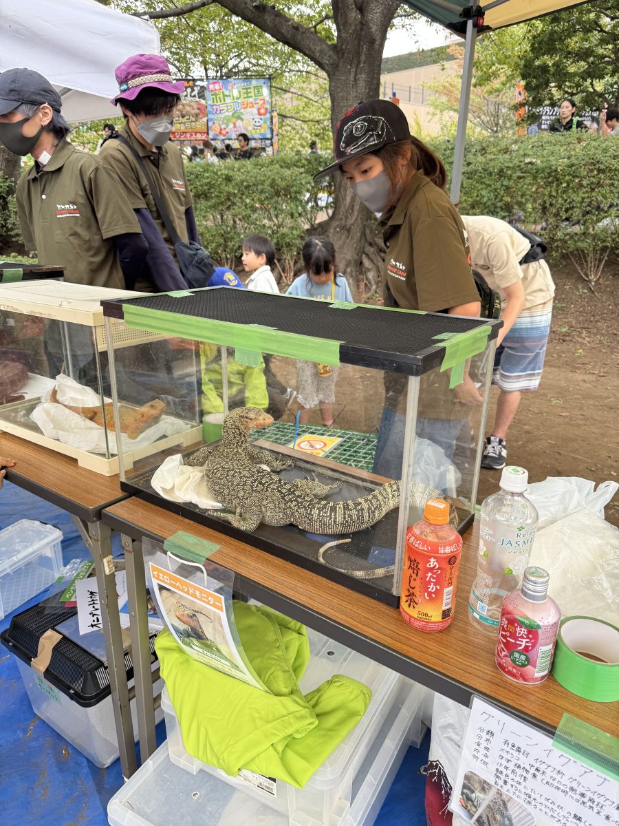 爬虫類コーナーでは、イグアナをお散歩させました。イグアナが歩く姿にいろんな方が釘付けでした!