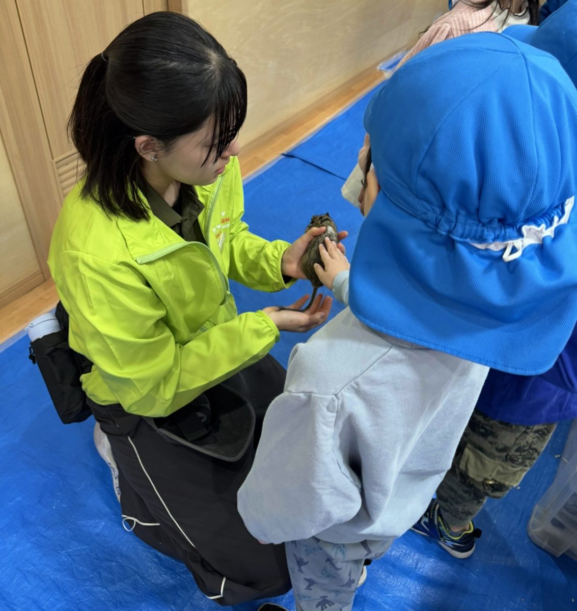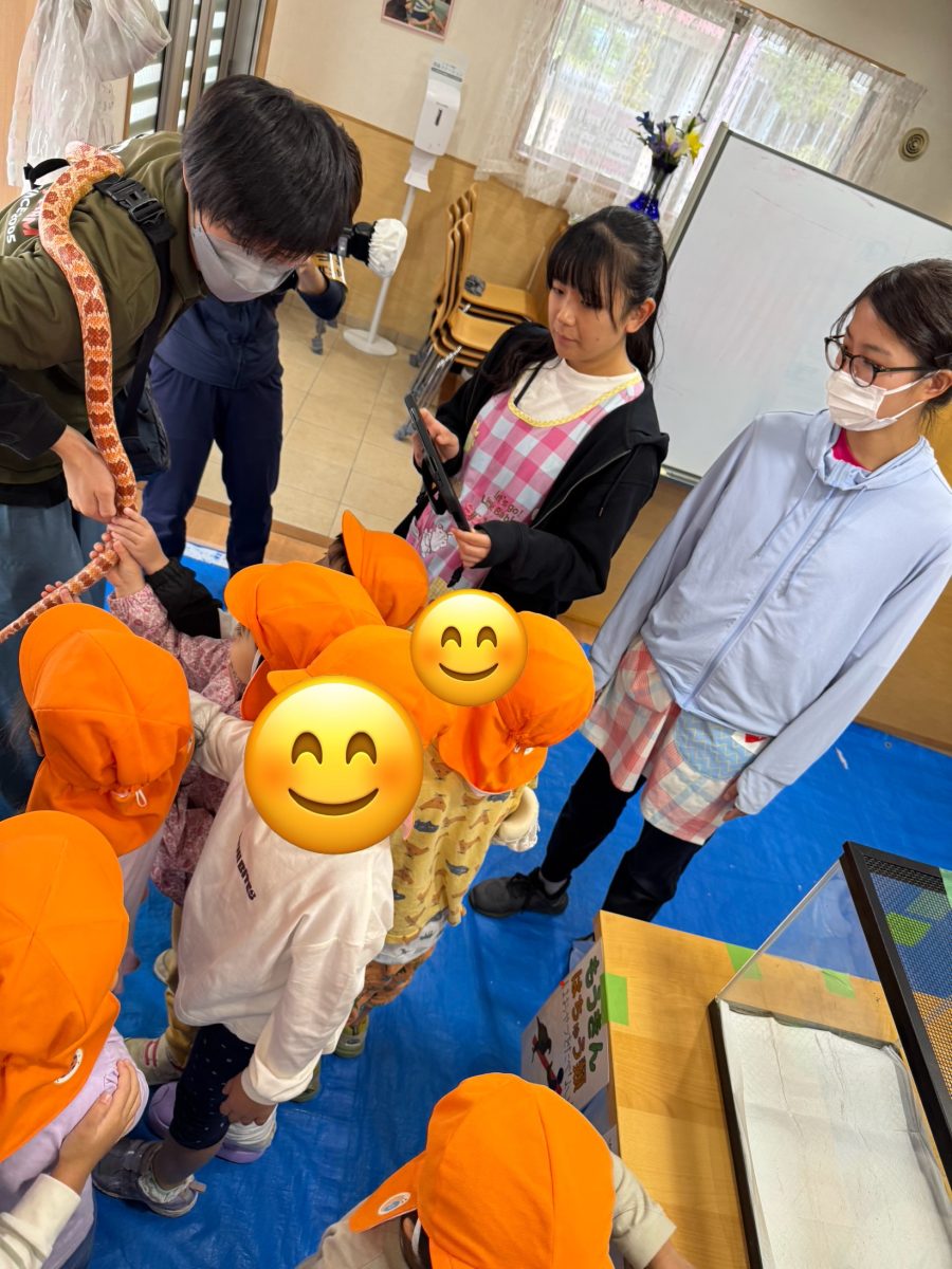 開催中は、小さな子ども達が多くいました。生徒たちは、子どもたちが安全に楽しめるよう、子どもたちの目の前に動物たちを持っていき、触れ合ってもらったりと、自分たちで考えながら行動する姿が見られました。