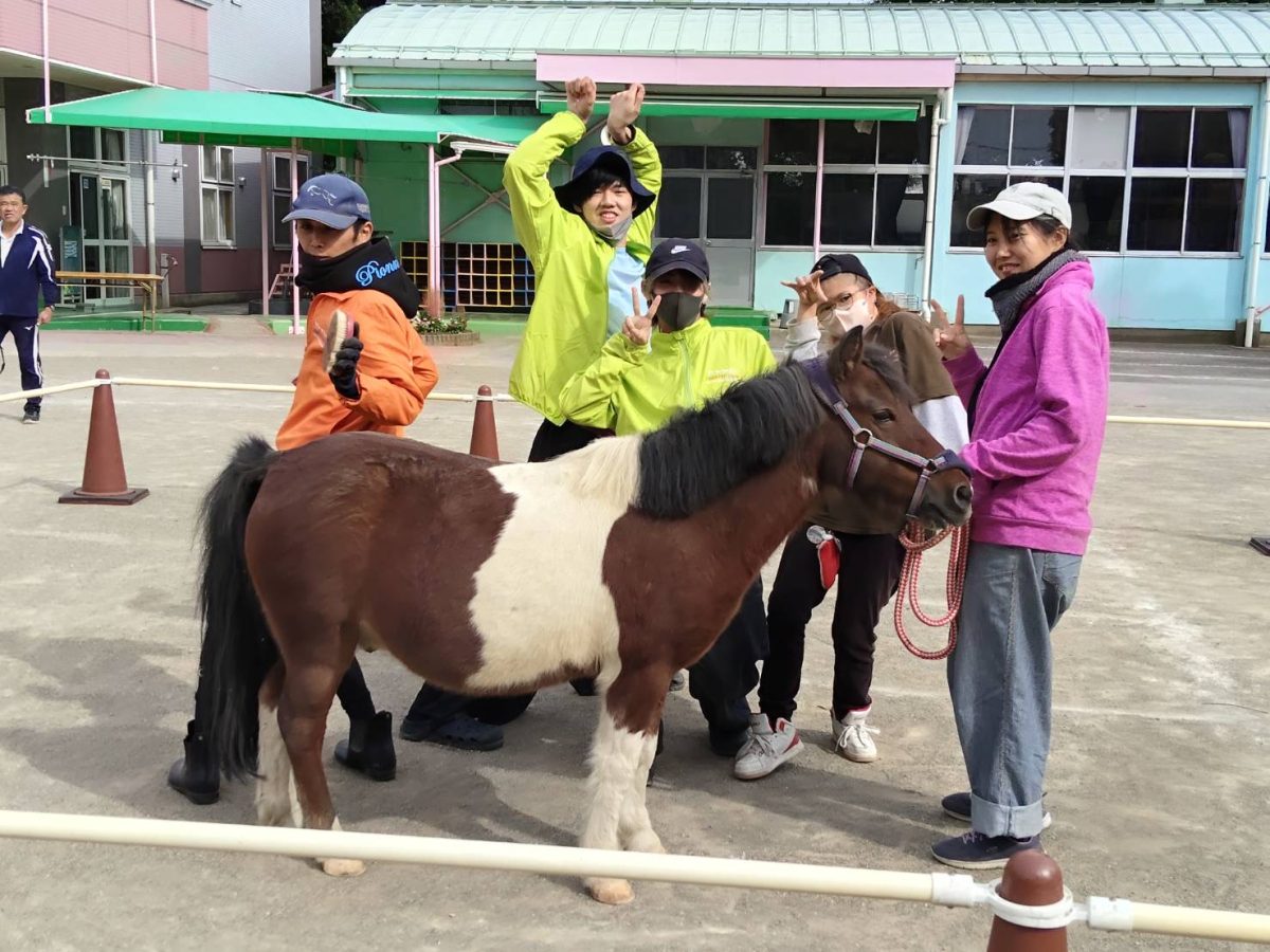 幼稚園児の皆さんの為のふれあいの説明を生徒自ら立候補してくれたり、ポニーを扱ったりなど、それぞれがレベルアップできた移動動物園でした🐴💕まさかの写真が撮れておらず、休み時間に学生と交流を深めた写真しか撮れてませんでした泣