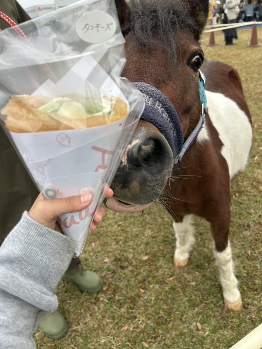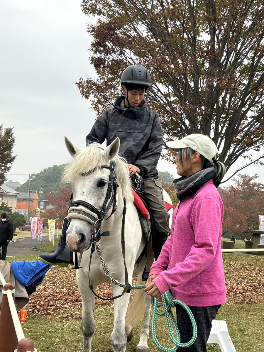 雨の為、ポニー乗馬の開催が危うい状態でしたが、思いが通じたのか、なんと、雨は午前中で止み、午後からではありましたがポニー乗馬も無事に開催する事ができました!