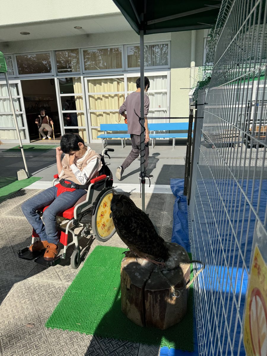 今回久しぶりの開催ということもあり、利用者さんも楽しみにしてくれていたそうで、うさぎを気に入ってそばから離れない方がいたり、怖がりながらもヘビの首巻きに挑戦してみたりと、利用者さんも施設スタッフの皆さまも終始笑顔で楽しんでいました。
