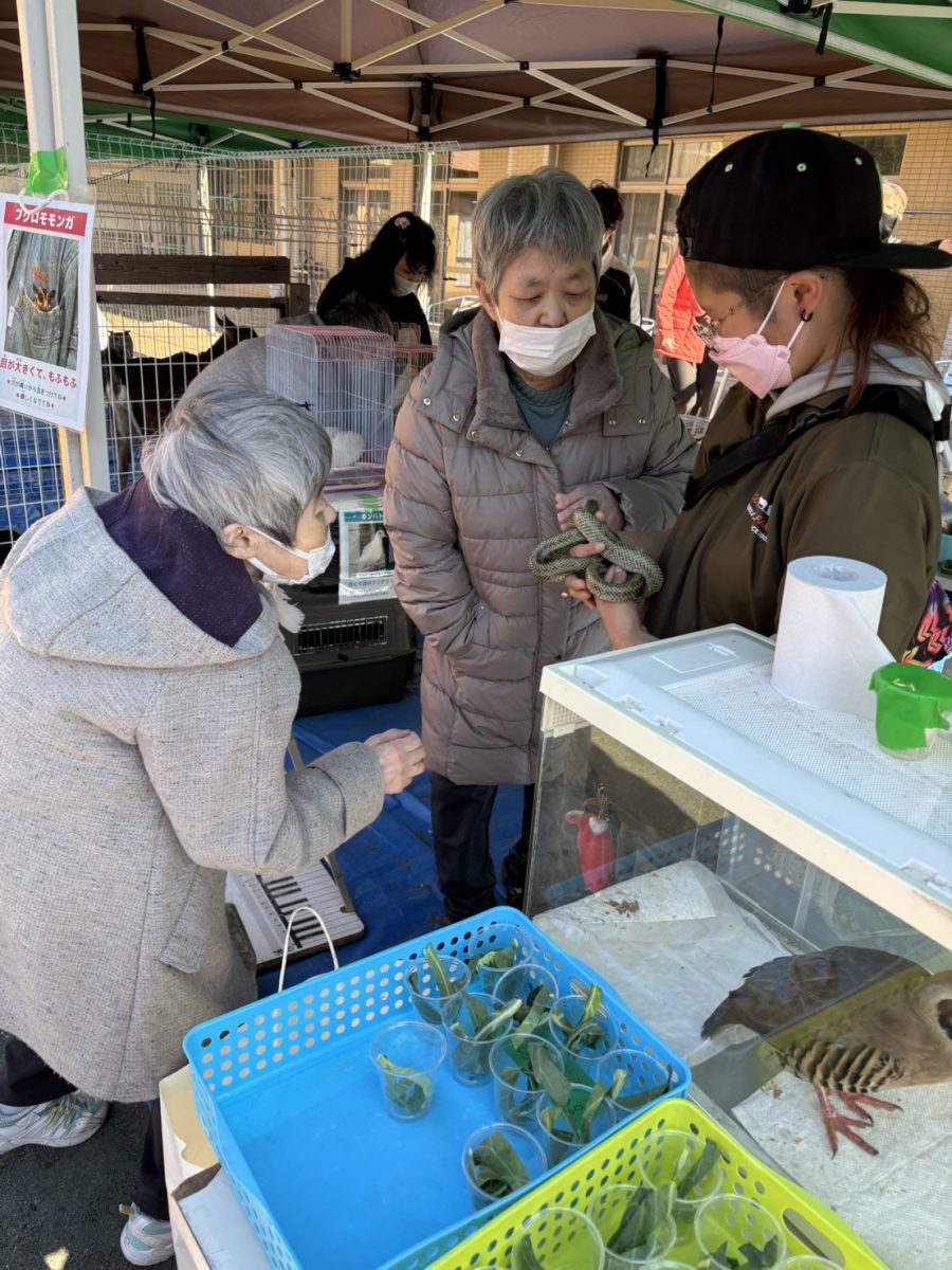 ふれあいが難しいかもしれないと言われていましたが、入居者様は自分の出来る最大限で動物達に対して思いやりと優しさを持ってふれあってくれていたのがとても印象に残っています。