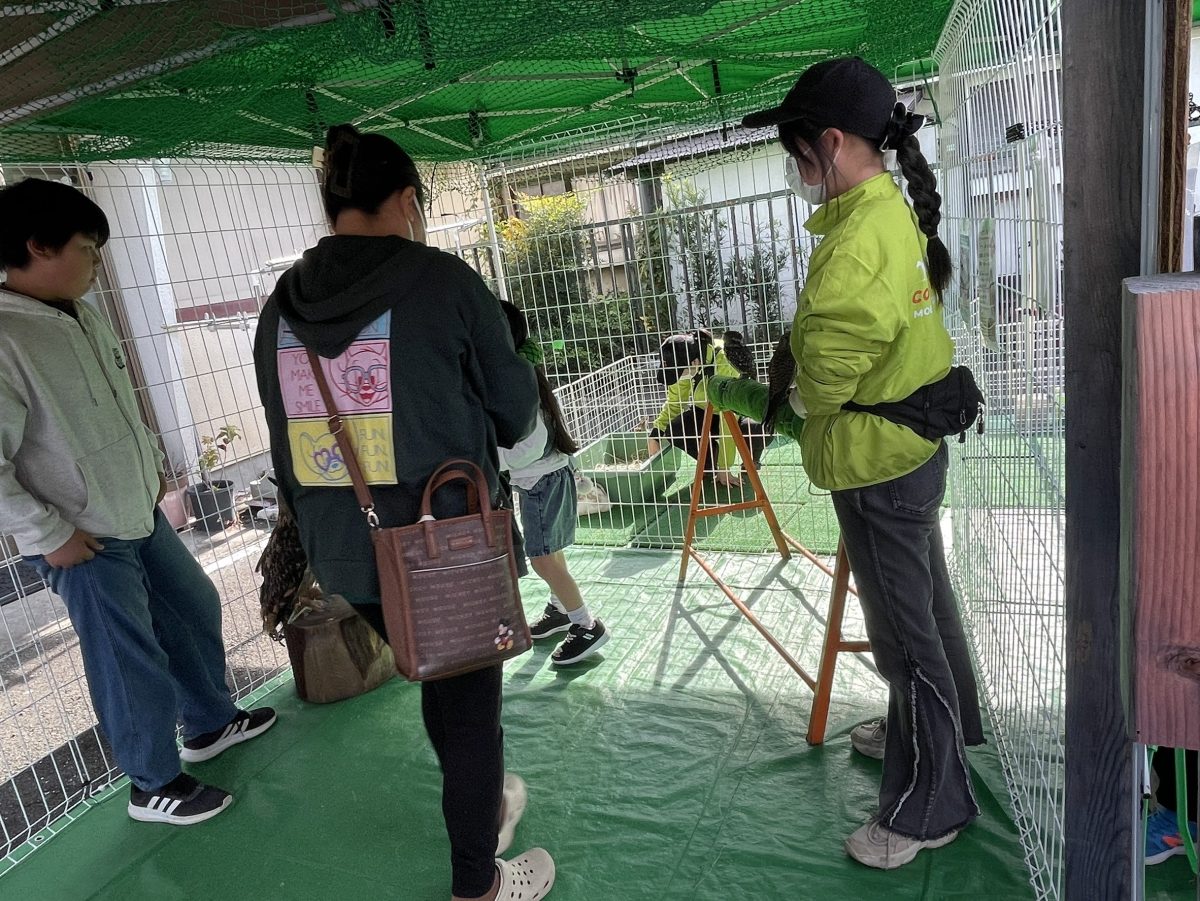 猛禽コーナーでは、触れる猛禽と、嘴が鋭いため触れ合えない猛禽が展示されていました。生徒たちは、お客様が誤って触れないよう、一生懸命に見張って注意を払ってくれました。こうした地道な安全への配慮のおかげで、事故なくスムーズに触れ合いを進めることができました。