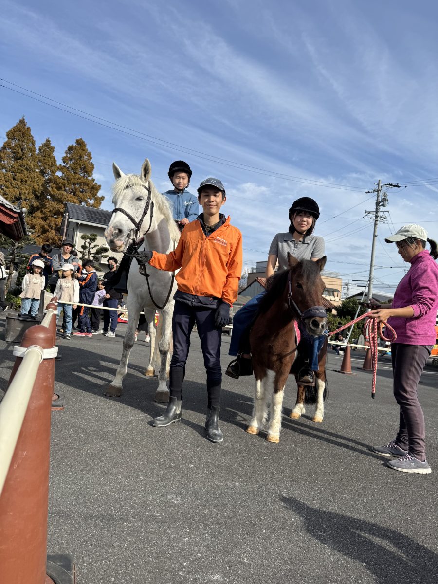 子どもたちに人気のポニーと馬の乗馬体験は、生徒たちがサポートを担当しました。初めて挑戦した生徒もいましたが、緊張しながらも子どもたちの乗り降りや安全を補助し、ポニーをリードしました。初めての挑戦を通して、生徒たちは大きな達成感を味わうことができたと思います。